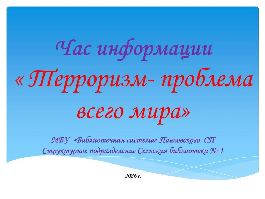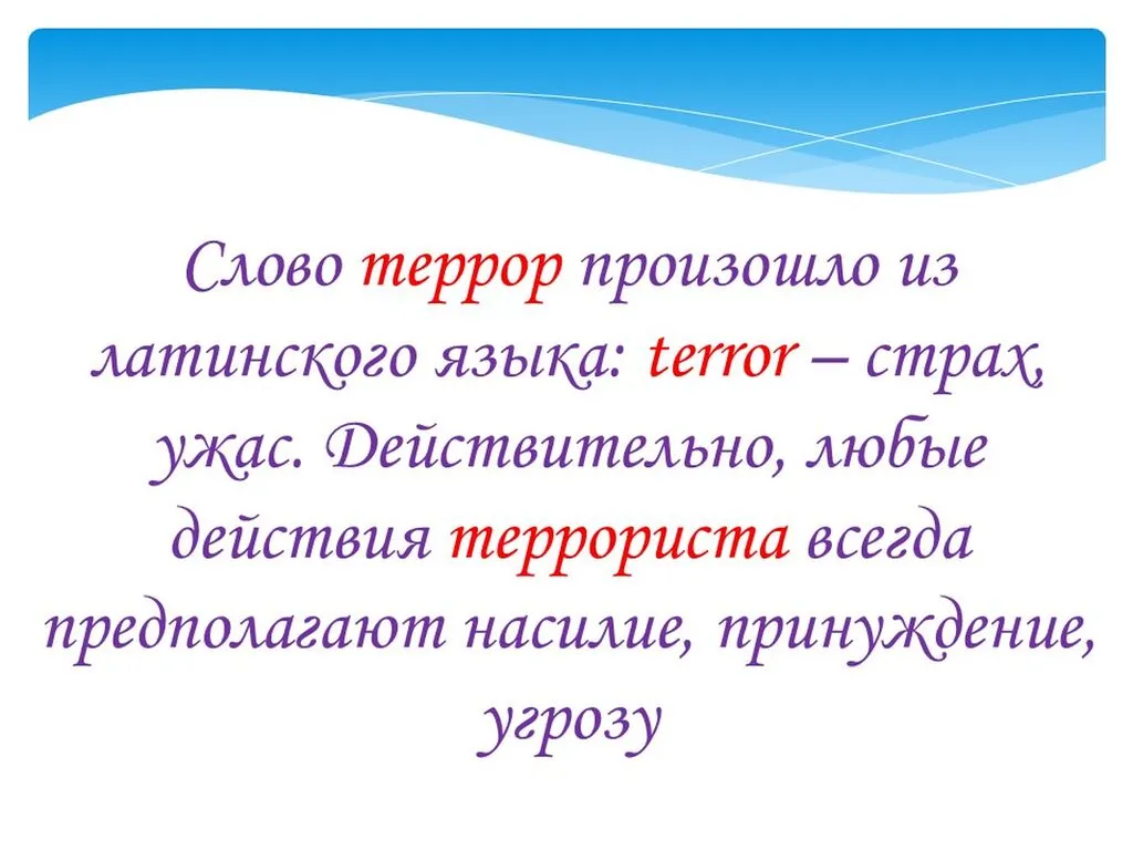 Терроризм — это глобальная угроза, охватившая почти все страны и ставшая одной из самых опасных проблем современности с 90-х годов ХХ века. Он влечет массовые жертвы, наносит огромный материальный и психологический ущерб, подрывает безопасность государств и провоцирует конфликты. Борьба с ним требует взаимодействия всего мирового сообщества, огромной работы государства, осторожности и внимательности каждого гражданина.